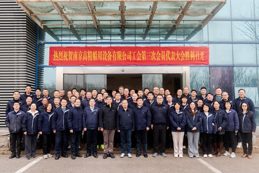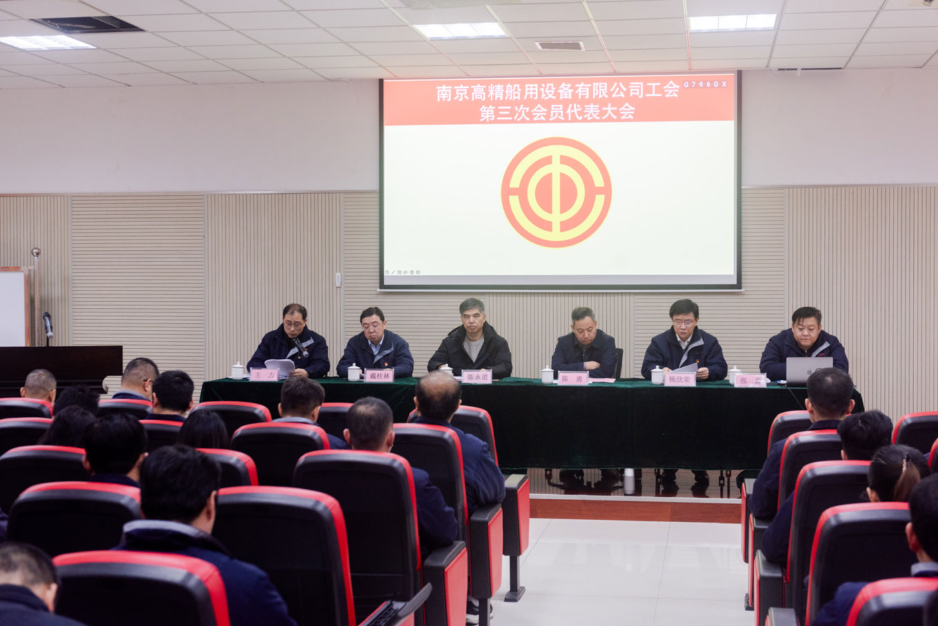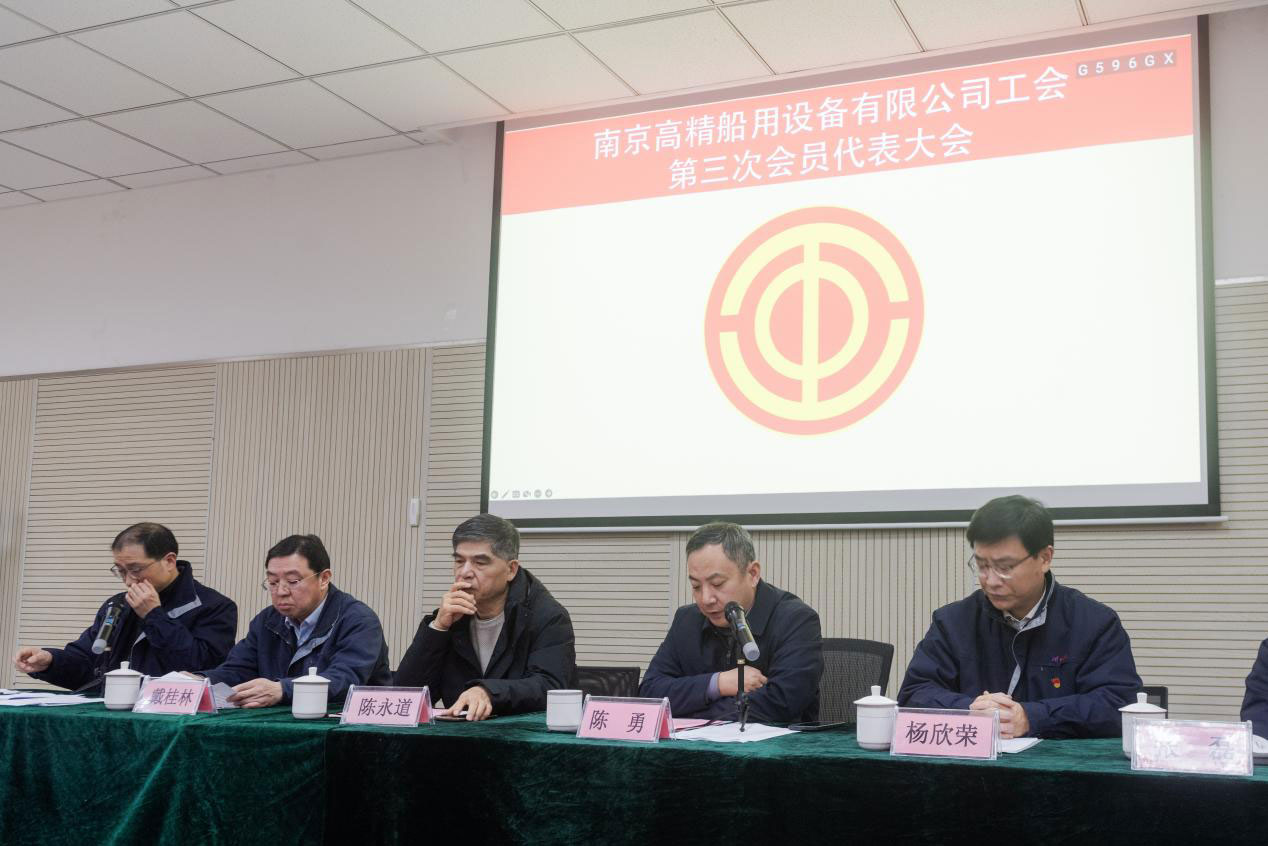 南京高精船用设备有限公司工会第三次会员代表大会于2026年2月5日下午在船用公司三期三楼会议室隆重召开。船用公司总经理陈永道,船用公司党总支书记、副总经理戴桂林,船用公司副总经理杨欣荣,船用公司工会主席王力,副主席张磊作为主席团成员出席本次大会。集团公司党委副书记、工会副主席陈勇莅临指导本次会议。大会由船用公司工会主席王力同志主持。