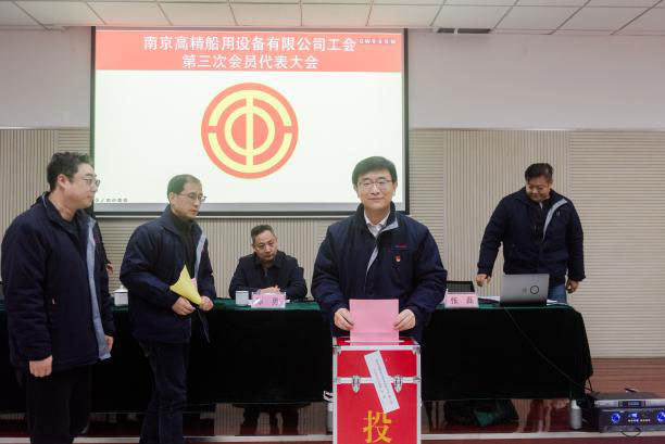 大会最后,全体会员代表举手表决,一致通过了南京高精船用设备有限公司第三次会员代表大会决议。大会要求并号召新一届工会委员会,应深入贯彻党的二十大及历届全会精神,继续发扬好的作风和做法,引导职工以“当好主人翁、建功新时代”为主题,一如既往地关心、关爱职工的生产、生活,着力构建和谐劳动关系,维护职工合法权益,发挥工会桥梁纽带作用,支持企业工作,引导广大职工进一步焕发劳动热情、释放创造潜能,通过劳动创造更加美好的生活,为高精船用的腾飞再创辉煌。