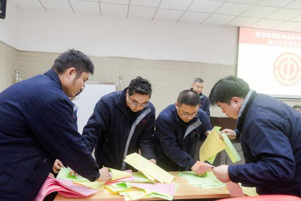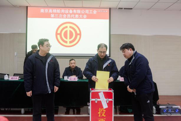 伴随着庄严的《国际歌》旋律,南京高精船用设备有限公司第三次会员代表大会圆满完成各项议程,胜利闭幕。此次大会是一次凝聚人心、鼓舞士气、谋划未来的盛会,为船用公司工会工作开启新征程、实现新发展指明了前进方向、注入了强大动力。新一届工会“三委会”将以此次大会为契机,牢记初心使命、坚守服务宗旨,不负全体代表和广大职工的信任与重托,团结带领全体职工坚定跟党走、奋进新征程,以主人翁的姿态勇担使命、奋勇争先,立足岗位创新创效,为推动船用公司高质量发展、为集团事业再攀高峰贡献工会力量、书写职工答卷,共同谱写船用公司工会工作和企业发展的新篇章!